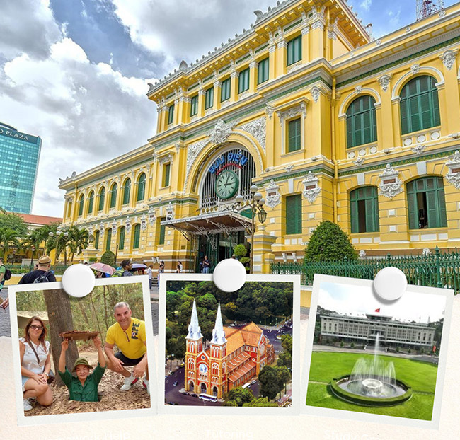 Trong ngày đi tour, bắt đầu với chuyến xe đón bạn ở khách sạn hoặc tập trung với những người khác trong tour. Khởi hành tham quan thành phố, đến những địa điểm nổi tiếng bao gồm Dinh Độc Lập, lựa chọn hàng đầu cho những du khách muốn tìm hiểu về lịch sử Việt Nam. Kế đó là Nhà Thờ Đức Bà, được xây dựng bởi thực dân Pháp vào những năm 1860. Nổi tiếng với kiến trúc xinh đẹp ảnh hưởng của Pháp, và tòa tháp chuông cao 190ft, 1 nơi đáng để chiêm ngưỡng. Sau đó bạn sẽ được đưa đến Bưu Điện thành phố, kế đó là Bảo Tàng Chứng Tích Chiến Tranh để hiểu sâu hơn về lịch sử và văn hóa Việt Nam. Từ đó, bạn sẽ đi chuyến xe 2.5 giờ đến Địa Đạo Củ Chi. Bò qua những đường hầm hẹp, đi lại quanh ngôi làng dưới đất được xây dựng bởi lính Việt và tìm hiểu thêm về chiến tranh Việt – Mỹ. Trước khi quay về thành phố, hãy thưởng thức vài món ăn ngon miệng – 1 cách tuyệt vời để kết thúc 1 ngày dài tham quan